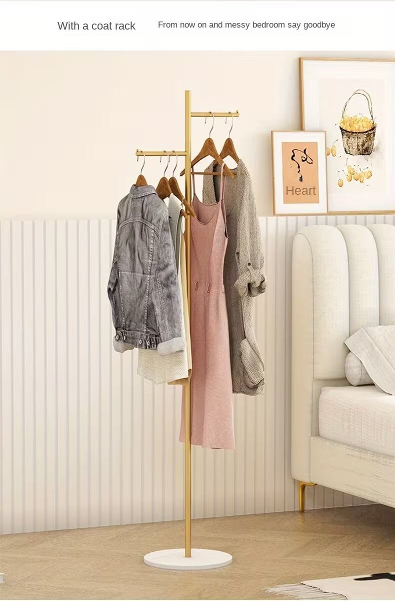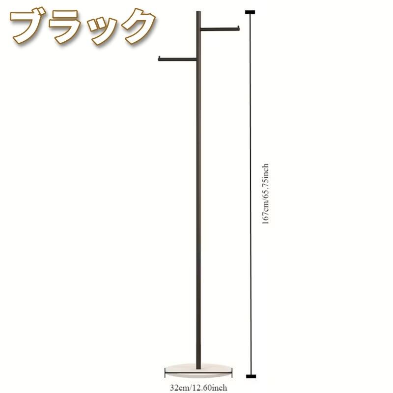 ハンガーラック 自立式 モダン 高級 おしゃれ かわいい ナチュラル アンティーク風 エレガント ミニマル インテリア 北欧 衣類ハンガー コートラック 多目的収納 寝室 リビング 省スペース 多機能 金属製 ゴールド ブラック 32×167cm