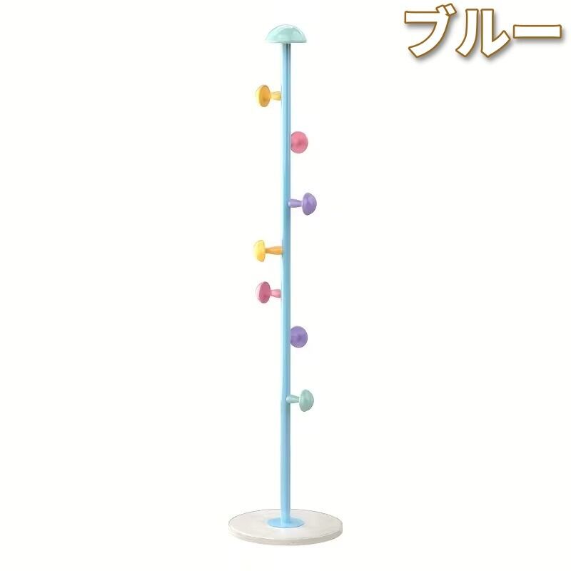 ハンガーラック 多機能 スタンド型 子供部屋 シェルフ おしゃれ かわいい ナチュラル アンティーク風 シンプル ミニマル インテリア 北欧 帽子ハンガー 衣類収納 リビング 寝室 省スペース 金属製 ホワイト ブルー ピンク イエロー 30×167cm