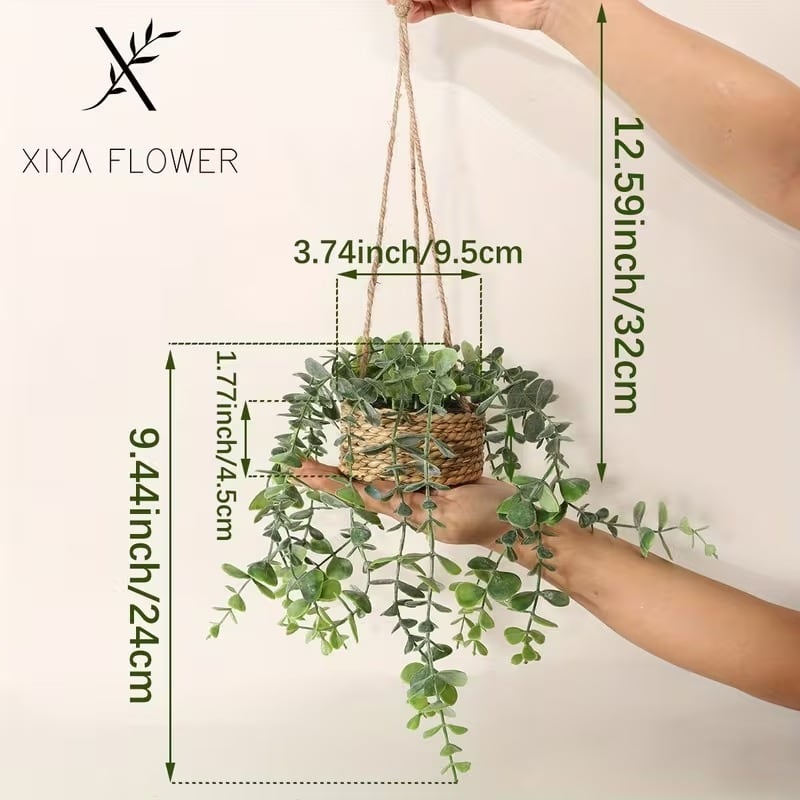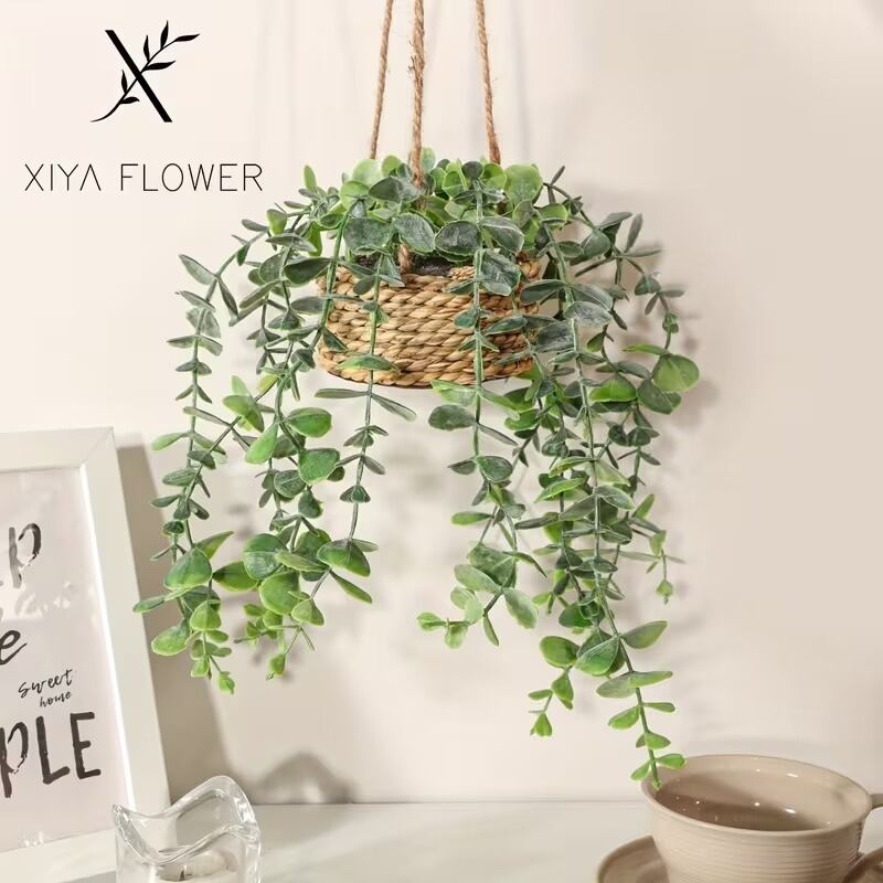 このフェイクグリーンのハンギングユーカリ風ブランチは、インテリアに自然の息吹をもたらします。