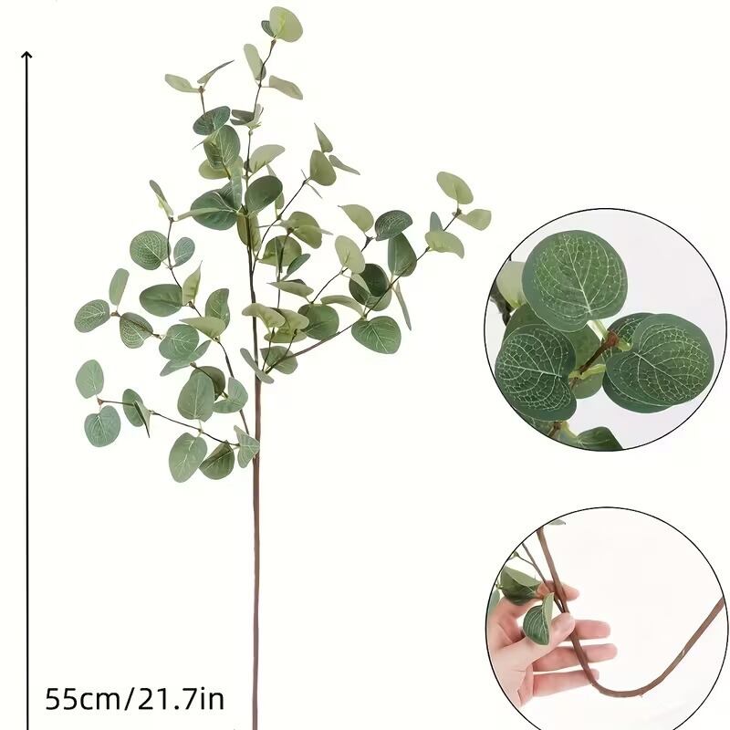 フェイクグリーン 6本セット ユーカリ 枝葉 おしゃれ かわいい ナチュラル シンプル ミニマル 北欧 インテリア 造花グリーン フラワーアレンジメント 花瓶装飾 ディスプレイ 室内装飾 オフィス リビング 枯れない 飾り プラスチック素材 55cm