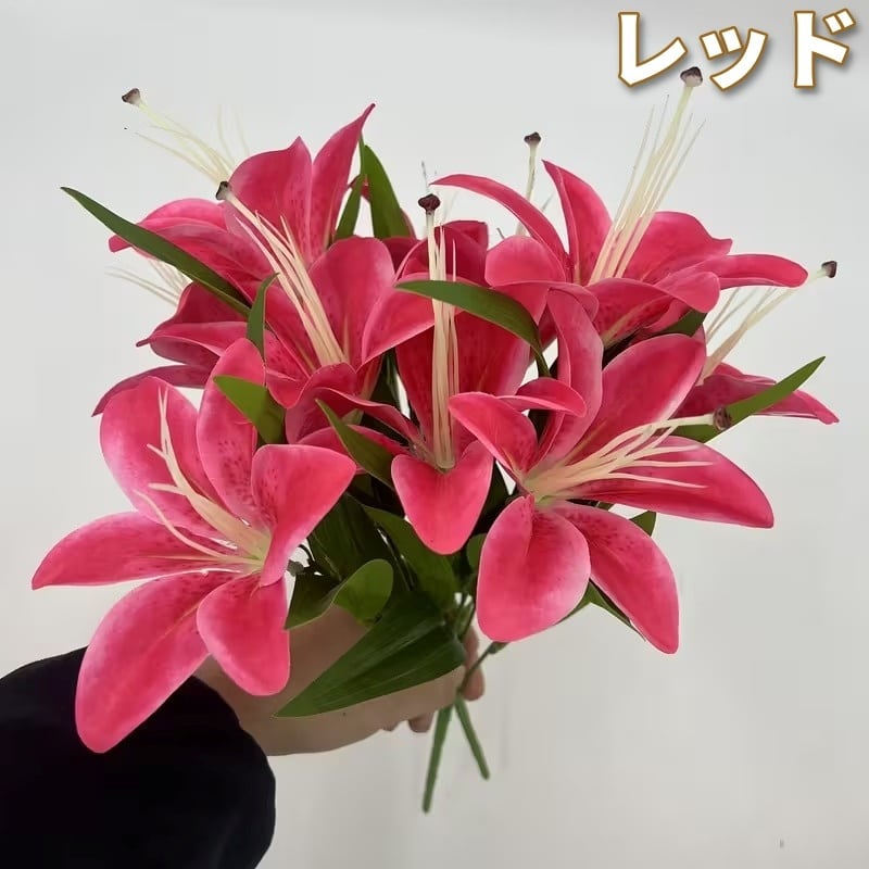 フェイクグリーン 2束セット リリー ゆり おしゃれ かわいい ナチュラル シンプル スタイリッシュ 北欧 インテリア 人工観葉植物 フラワーアレンジメント ディスプレイ 室内装飾 オフィス リビング 枯れない花 ホワイト ピンク イエロー オレンジ レッド