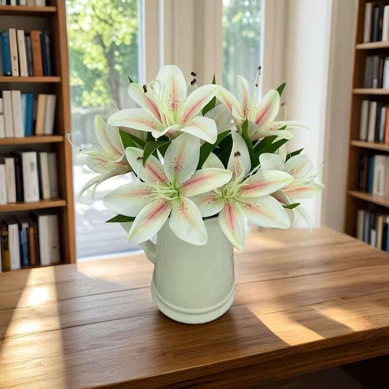 リリーの優雅な姿が、シンプルでありながらも洗練された北欧スタイルを引き立てます。