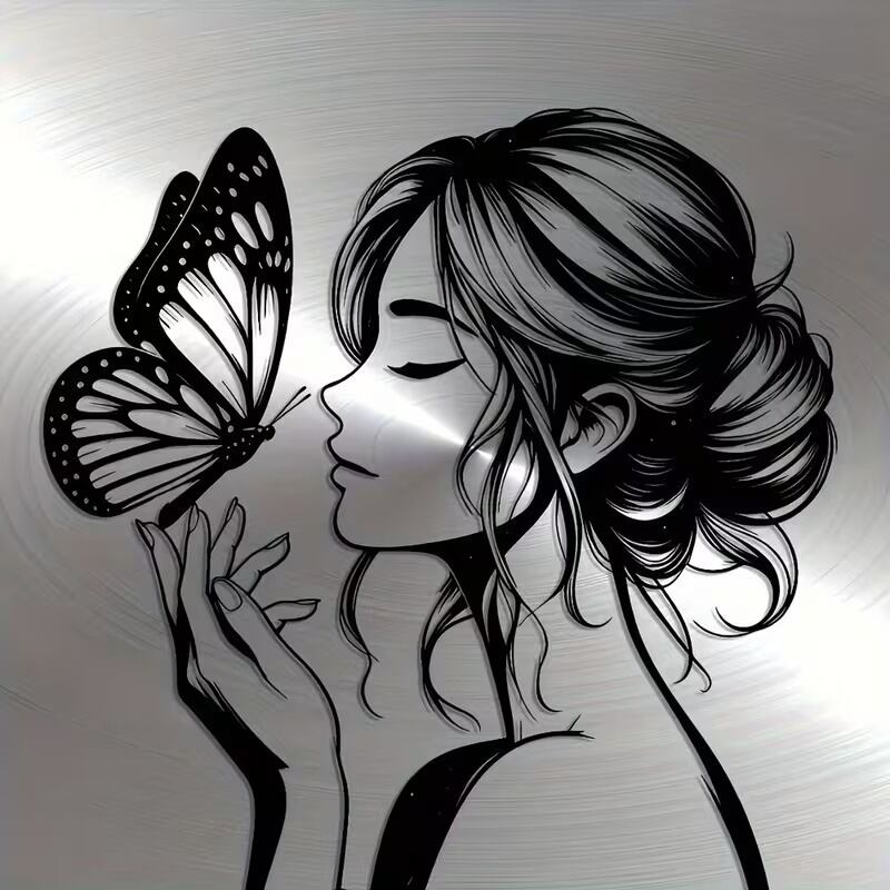 優雅な蝶が舞う、女性のシルエットが織りなすエレガントなウォールアート。