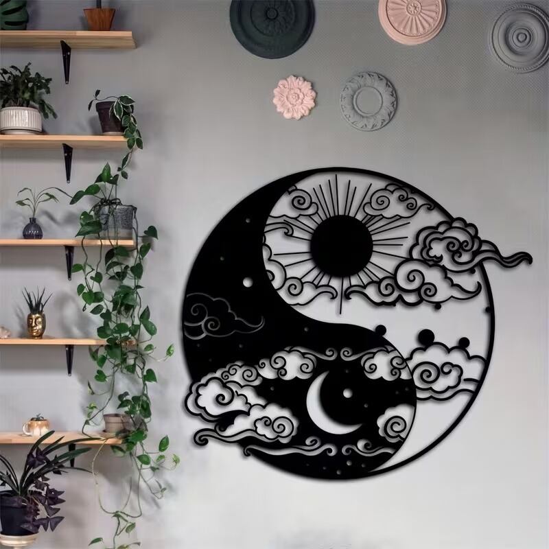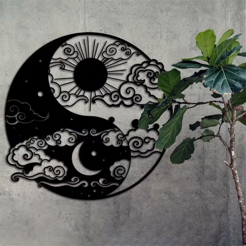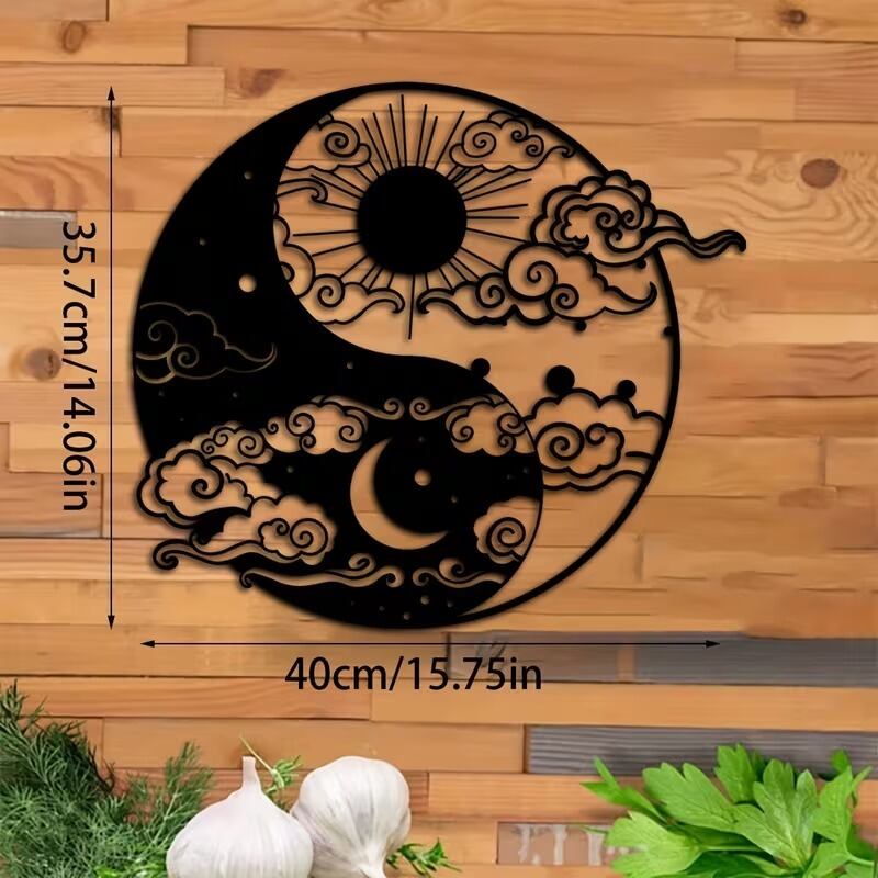 太陽と月のシルエットが織りなす陰陽太極図は、北欧インテリアにぴったりのスタイリッシュなデザイン。