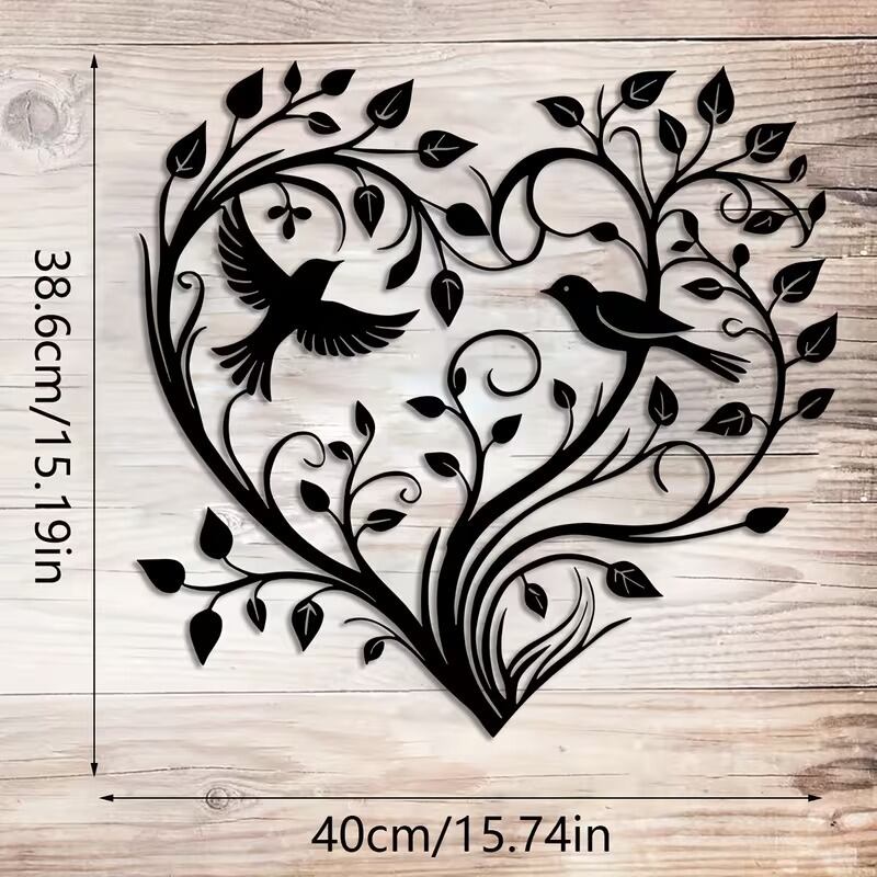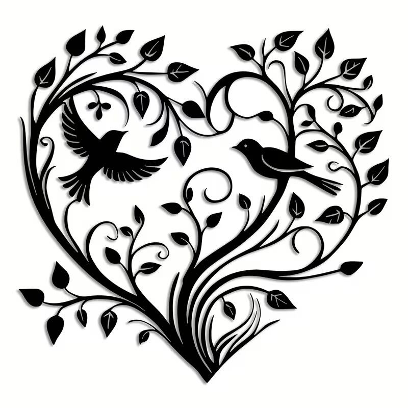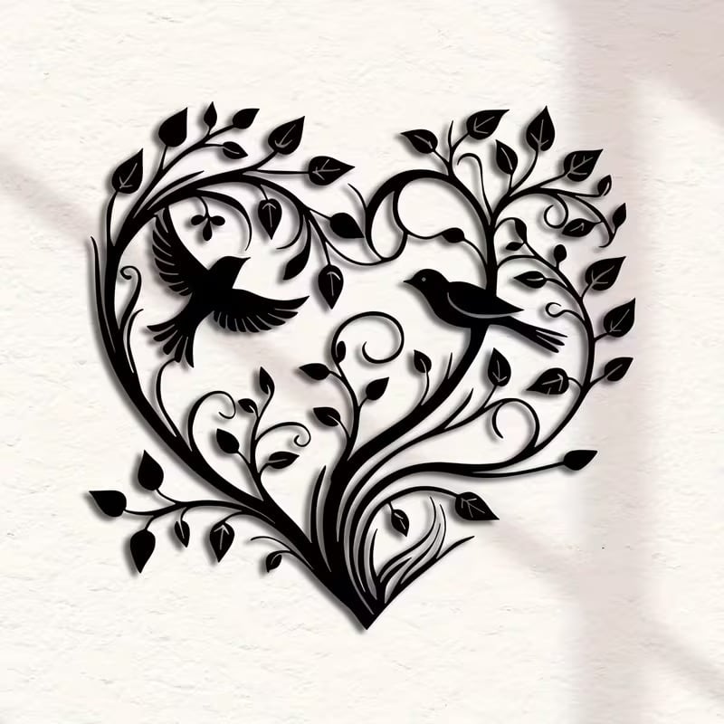 心を温める、ハートと鳥のシルエットが織りなすエレガントなウォールアート。