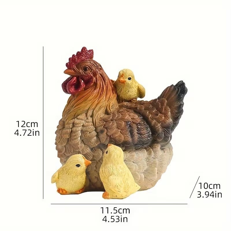 このガーデンオブジェは、ニワトリとひよこの親子が織りなすリアルでかわいい姿を再現した置物です。