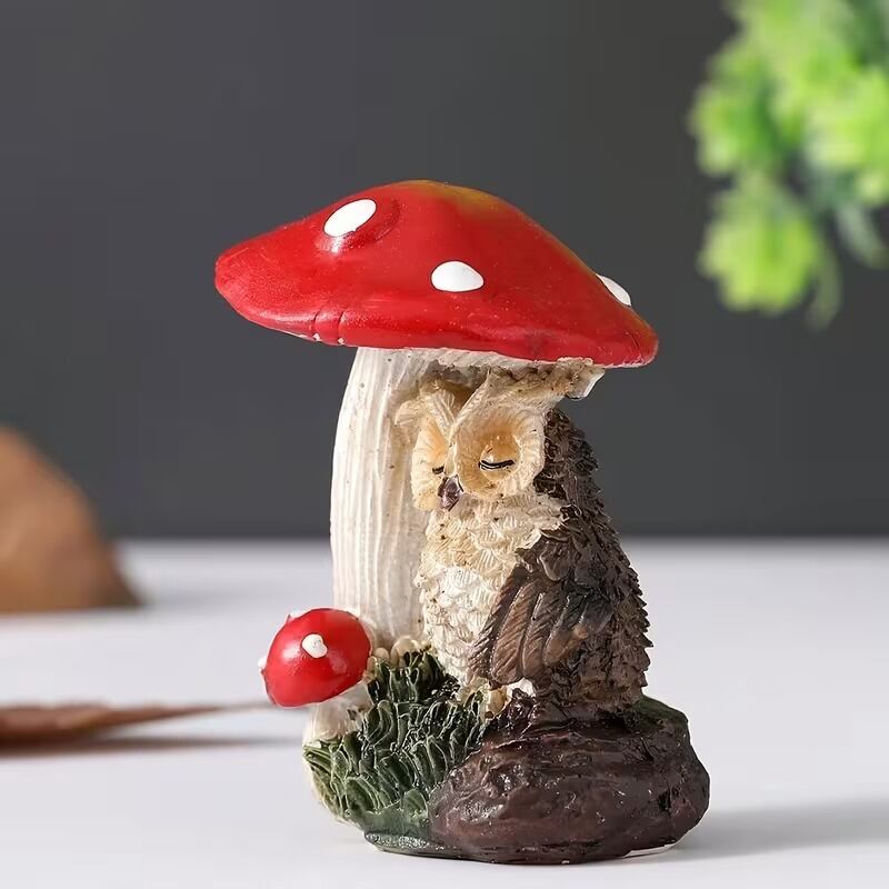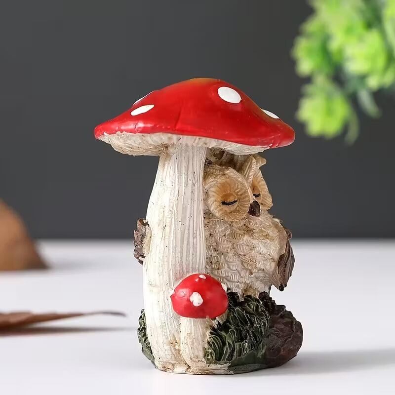 ガーデンオブジェ きのこ ふくろう 置物 かわいい メルヘン ナチュラル おしゃれ リアル インテリア 北欧 ガーデンオーナメント ディスプレイ マスコット 飾り 庭 屋外 花壇 ガーデニング ガーデン アウトドア 玄関 動物 童話 樹脂 5×7cm