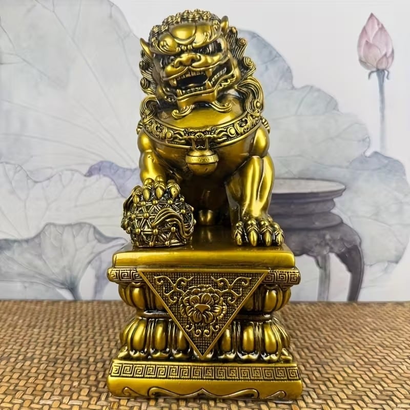 このガーデンオブジェは、獅子の魅力を兼ね備えたゴールド色の置物です。