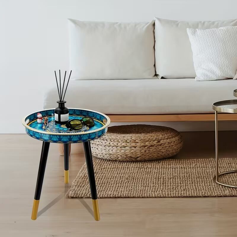 華やかさと機能性を兼ね備えた、青い花柄のサイドテーブル。