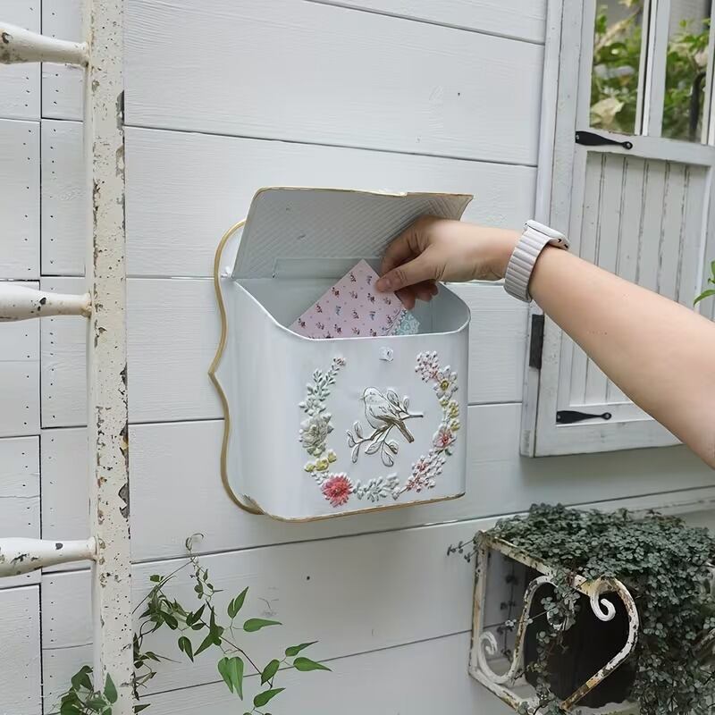 ポスト 宅配ボックス 花 鳥 壁掛け ヴィンテージ風 エレガント おしゃれ かわいい シンプル スタイリッシュ インテリア 北欧 玄関 オブジェ メールボックス 郵便箱 郵便ポスト 郵便受け ガーデニング 雑貨 ヨーロッパ風 ホワイト 27.5×10×31cm