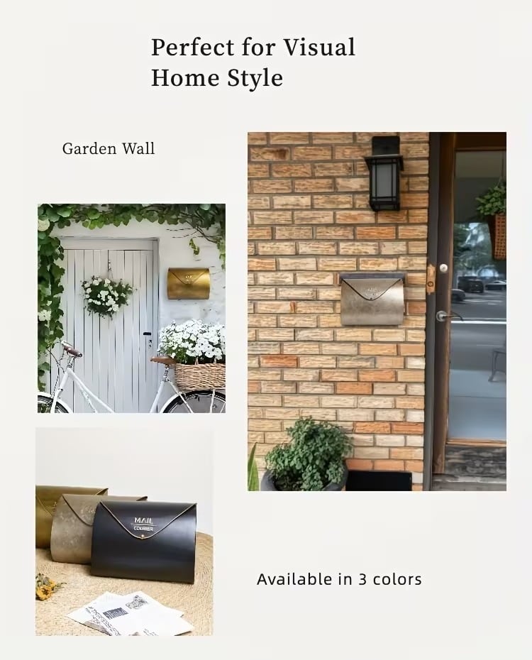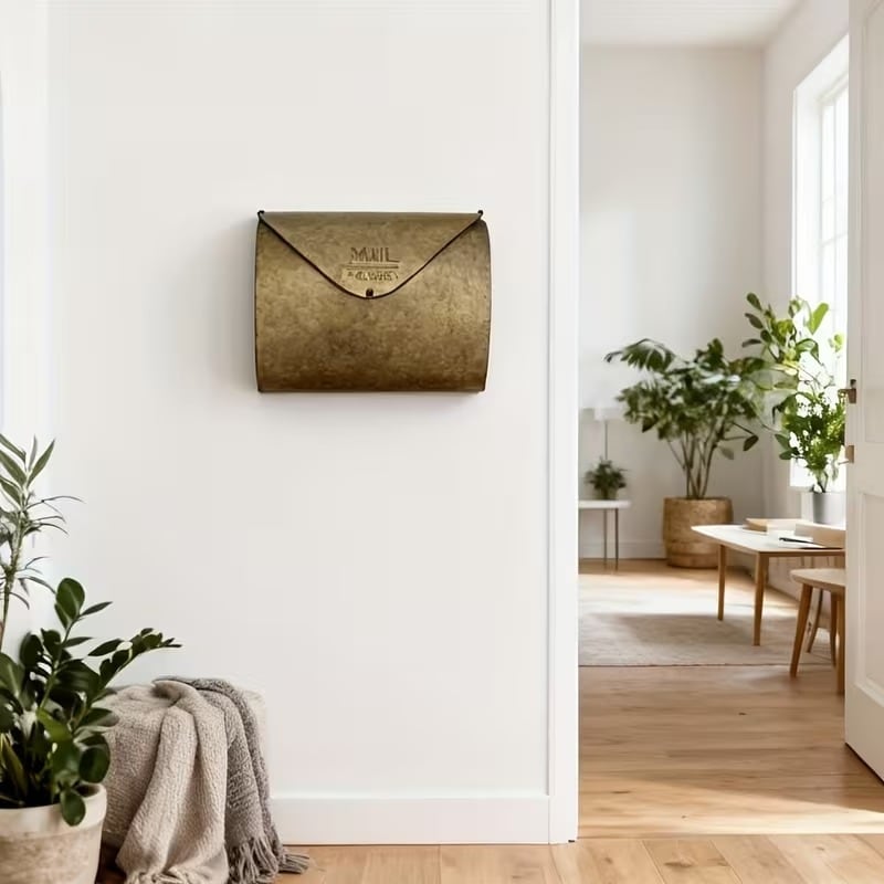 玄関を彩るエレガントなアクセント、アンティーク風の封筒型宅配ボックス。