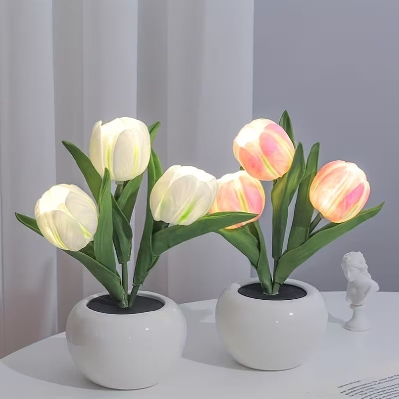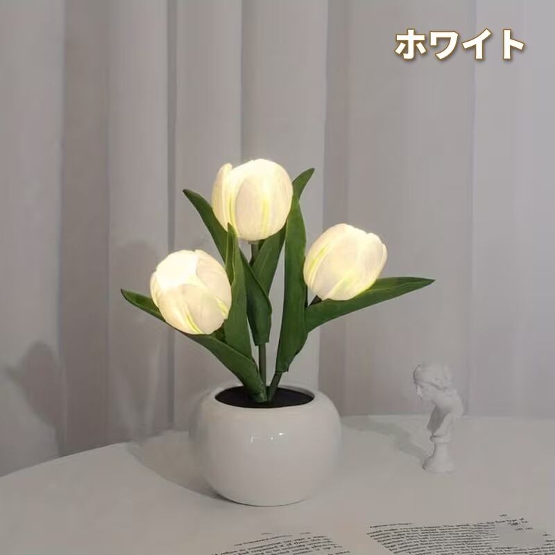 インテリア雑貨 LEDランプ チューリップ 花束 ポット付き おしゃれ かわいい インテリア 北欧 ライト USB充電式 花瓶入り 置物 オブジェ ホワイト ピンク オレンジ プラスチック 9.5×22cm
