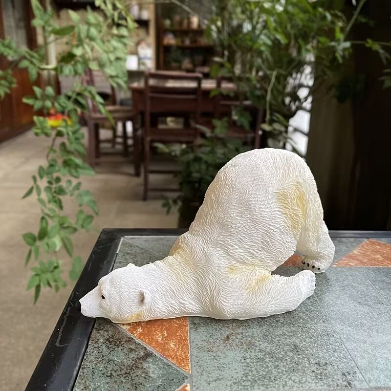 置物 オブジェ ホッキョクグマ 白くま 寝そべり かわいい リアル ナチュラル ユニーク ほっこり インテリア 北欧 動物 庭 屋外 室内 装飾 樹脂 18×9×9.5cm